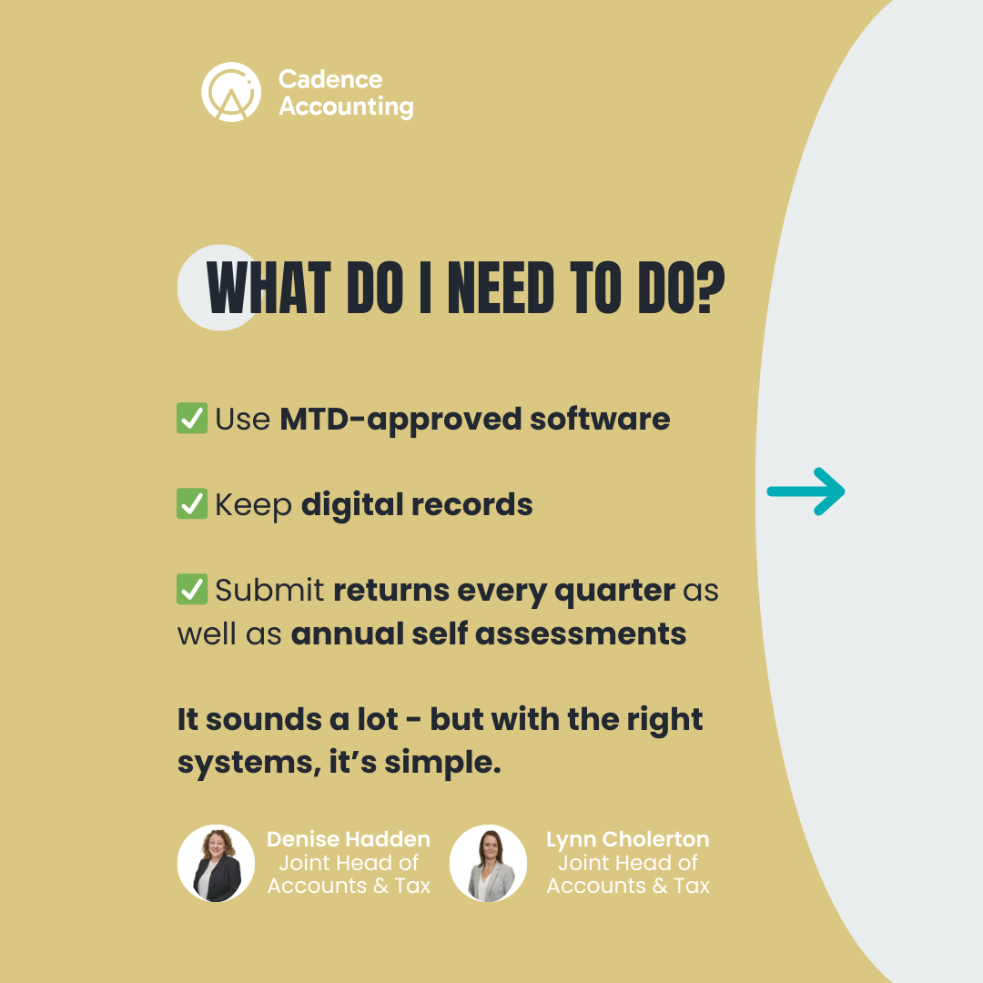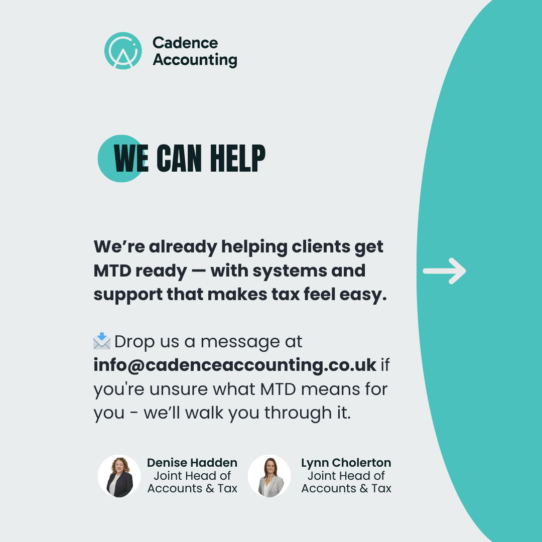 At Cadence, we know that Making Tax Digital can feel like a big change – but you don’t have to navigate it alone. Our team can: